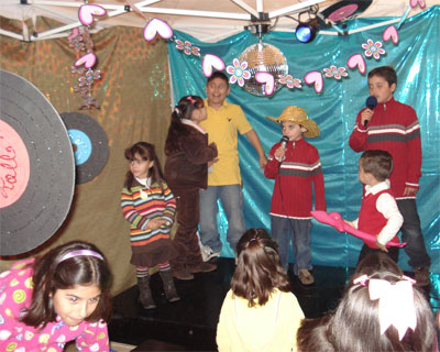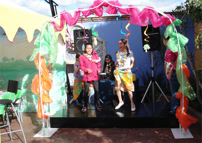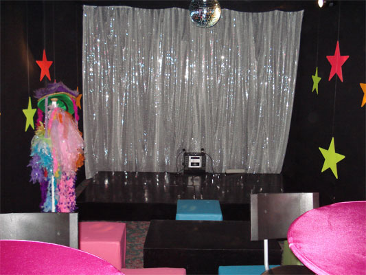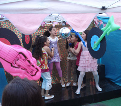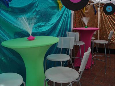 The Bolitas’ Disco Lounge takes place under 2 tents.Anyone care to dance? How about karaoke? Do you remember your disco days? Your children can experience the disco ball and the clouded room. They will have a ball with their friends on the dance floor or acting out their favorite artist songs on the karaoke stage or just relax at a table while sipping their favorite soda pop. We provide the entire decor, along with hanging records, tables, stage, music and karaoke machine.
