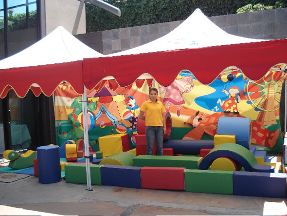El Mini Gimnasio de Bolitas es presentado en un espacio de dos carpas.